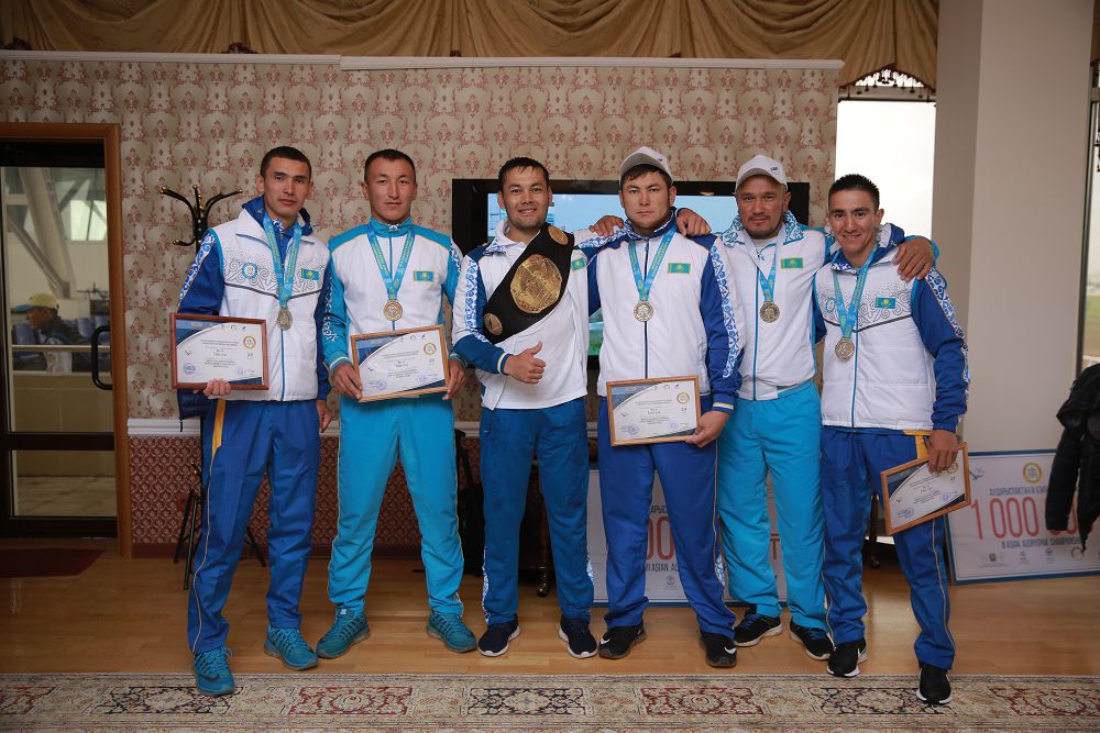 Bulardyń syrtynda aýdaryspaqtan jarystyń «túıe balýany» anyqtaldy. Iаǵnı absolıýtti salmaq boıynsha 10 azamat saıysqa túsip, chempıondyq beldik pen 2 mıllıon teńge júlde qory aqtóbelik Arman Saǵynbaevtyń qanjyǵasyna baılandy.