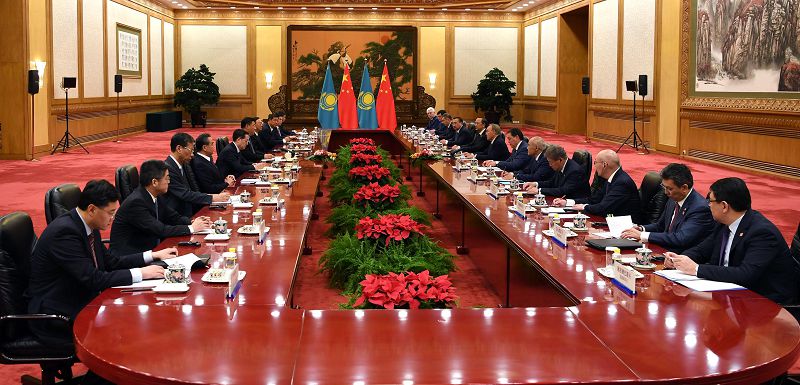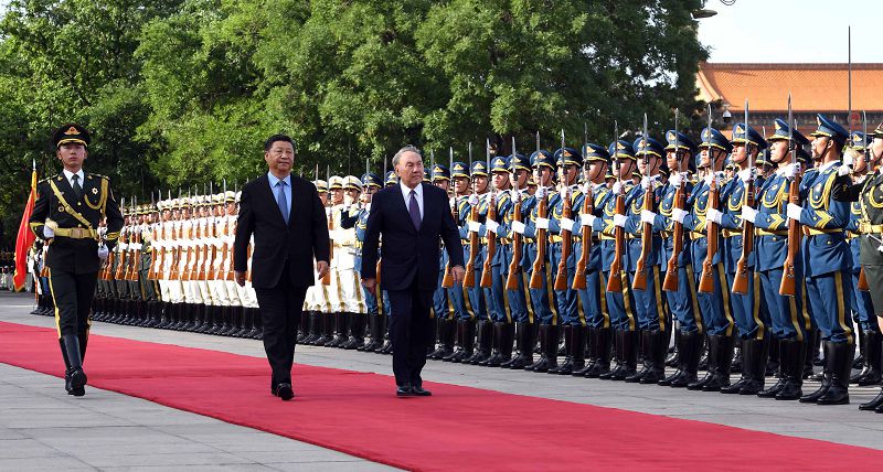 Memleket basshysy Nursultan Nazarbaevtyń Qytaı Halyq Respýblıkasynyń Tóraǵasy Sı Szınpınmen kezdesýiniń resmı saltanaty Halyq jınalysy úıiniń alańynda ótti. Resmı sátten soń memleketter basshylary keńeıtilgen quramda kezdesip, birqatar keleli máseleler boıynsha kelissózder júrgizdi.