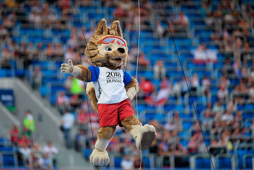 2018 jylǵy álem chempıonatynyń resmı logotıpi 2014 jyly tanystyryldy. Onyń tanystyrý rásimine FIFA-nyń sol kezdegi prezıdenti Iozef Blatter, Reseı Federasııasynyń sport mınıstri Vıtalıı Mýtko jáne 2006 jylǵy álemniń úzdik fýtbolshysy ıtalııalyq Fabıo Kannavaro qatysty. Al birinshiliktiń talısmany retinde Zabıvaka atty qońyr túkti jáne kógildir kózdi antropomorfty qasqyr tańdalǵan. Zabıvakanyń kıimindegi aq, kók jáne qyzyl túster Reseı týynyń túsin beıneleıdi. Chempıonattyń ánuranyn ashylý saltanatynda amerıkalyq akter, hıp-hop oryndaýshy Ýıll Smıt pen Nıkı Djem jáne albanııalyq Era Istrefı shyrqaıdy.