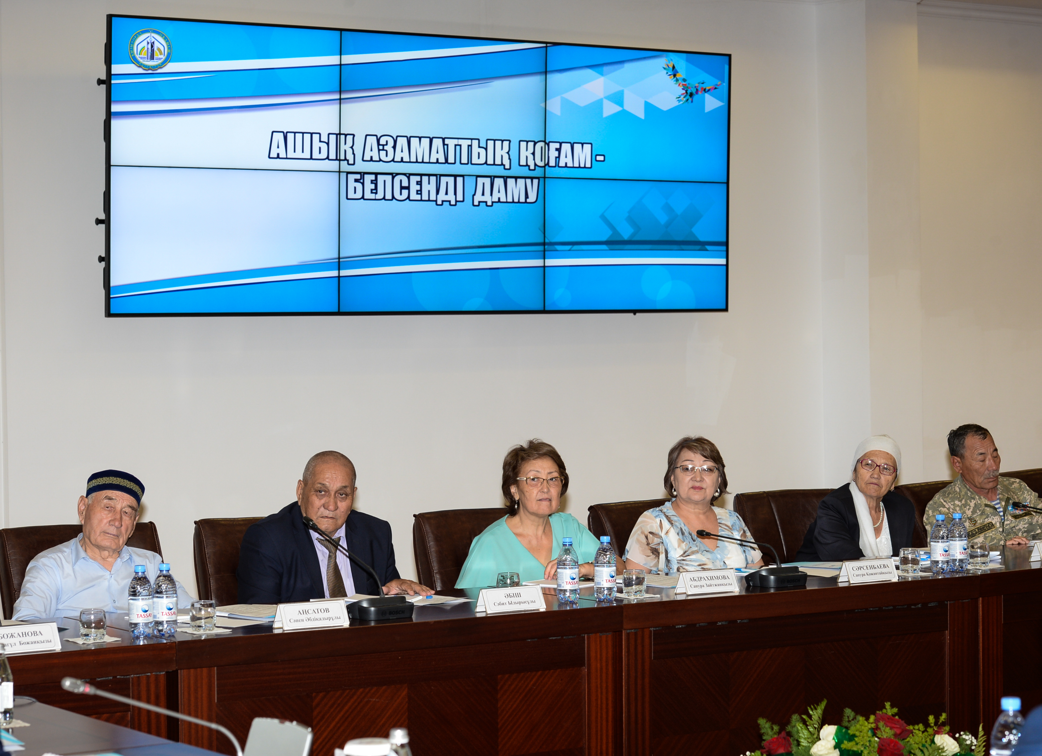Jergilikti qoǵamdyq birlestikterdiń basshylary salalary boıynsha júzege asyrylyp jatqan jobalar týraly baıandama jasady.