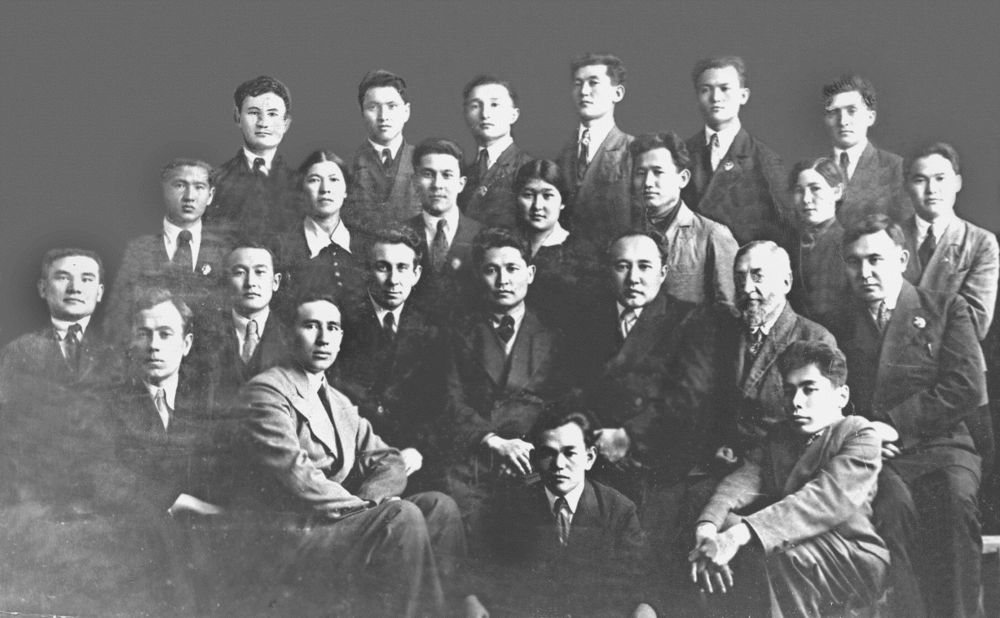 Sýretterde: Muhtar Áýezov bastaǵan muǵalimder QazPI-diń túlekteriniń ortasynda. (1939 jyl. Á.Sadyrov – eń sońǵy qatarda soldan birinshi tur);