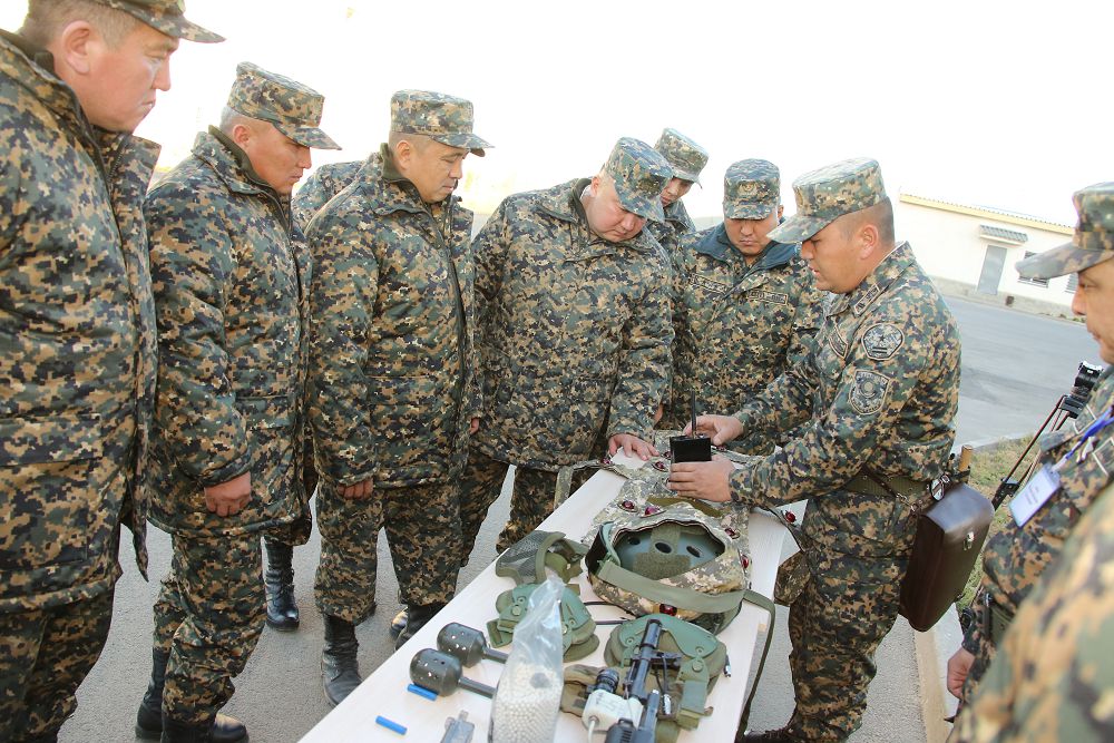 Sondaı-aq jıyn barysynda komandırlerge áskerge jańadan kelip jatqan sońǵy úlgidegi kózdeý quraldary men jattyǵý qurylǵylary, naqtylap aıtsaq, lazermen ımmıtasııalanǵan mýltımedııalyq atý tıriniń jáne basqa da qurylǵylardyń qyr-syry tanystyryldy.
