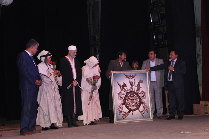 Qoıylym bitken soń sahnaǵa Dúısenáli Byqybaev shyǵyp, Sultan Raev bastaǵan aıyr qalpaqty aǵaıyndarǵa alǵysyn bildirdi. Qazaq pen qyrǵyzǵa ortaq jazýshynyń mereıtoıymen kópshilikti quttyqtap, halqymyzdyń jón-joralǵysymen qurmetti qonaqtarǵa syı-sııapat kórsetti. Jambyl jerinde sahnalanǵan drama týraly, jalpy qazaq halqy týraly Qyrǵyz Respýblıkasy Prezıdentiniń keńesshisi, jazýshy Sultan Raev óz oıymen bólisti. «Qasıetti Naıman ana beınesi óz ultynyń temirqazyǵy. Shyńǵys Aıtmatovtyń «Ǵasyrdan da uzaq kún» romanynyń ınssenırovkasy 1998 jyly jazylyp, Bishkek qalasyndaǵy «Tuńǵysh» teatrynda qoıyldy. Bul shyǵarmaǵa Shyńǵys aǵamyzdyń ózi joǵary baǵasyn bergen bolatyn. Men Shyńǵys aǵamyzdyń janynda kóp júrdim. Qazaqtyń darhandyǵy, keńpeıildigi jaıly kóp estidim. Ol kisi negizinen qazaq pen qyrǵyzǵa ortaq tulǵa. О́z shyǵarmalarynda da qazaq dalasy týraly tebirene tolǵaıdy. Al Lýgovoı maldárigerlik tehnıkýmynda oqyǵan sátterindegi estelikteriniń ózi bir tóbe. Kezinde qazaq Jambyl Jabaev pen qyrǵyz Toqtaǵul Satylǵanovtyń dostyǵy keremet bolǵan. Kenen Ázirbaev atamyz da qyrǵyz jerine jıi kelip turǵan. Sondyqtan da qazaq pen qyrǵyz halqynyń dostyǵyn biz joǵary baǵalaımyz», deıdi jazýshy.