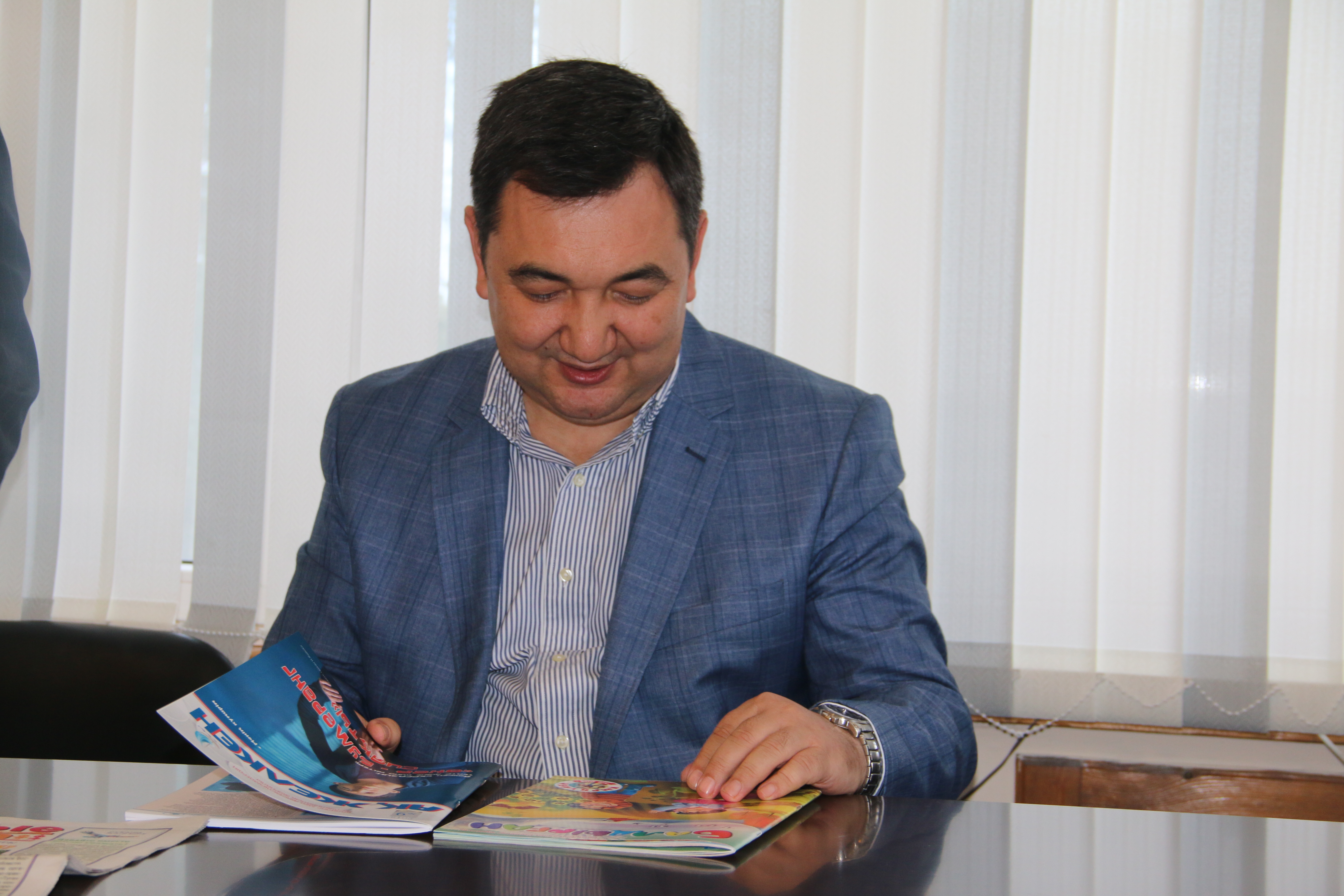 Redaksııa ujymymen kezdesip, pikirlesti. Balalar basylymdaryna qoldaý bildirý kerektigine basa nazar aýdardy. «Basylymdarǵa kúshtep jazdyrýǵa men de qarsymyn. Biraq, balalar basylymyna kelgende kózqarasym sál basqasha. О́ıtkeni eresek adamdar ózine ne kerek ekenin biledi, al áli kózqarasy qalyptaspaǵan balalarǵa baǵyt-baǵdar bergen durys. О́zimiz osy balalar basylymdarymen óstik», – degen ol Farıza apaılardy kórý, sabaqtan bos ýaqytta osy redaksııalarǵa kelip hat qorytý da ózinshe qyzyq bolǵanyn atap aıtty.