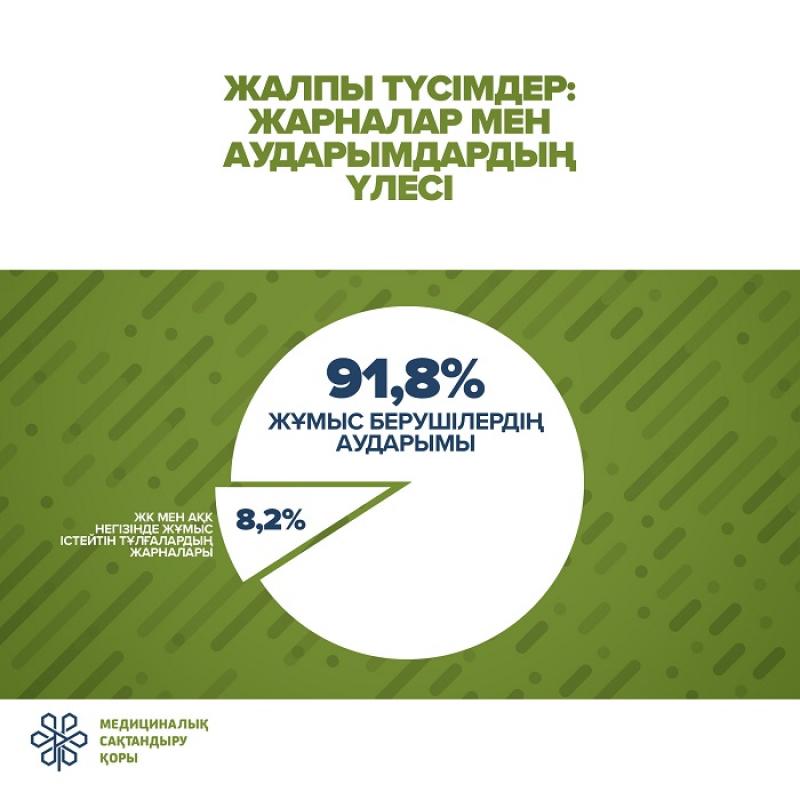 Onyń 96,4 mlrd teńgesi (91,8%) jumys berýshilerdiń aýdarymdary bolsa, qalǵan 8,6 mlrd teńge (8,2%) – jeke kásipkerler men azamattyq-quqyqtyq kelisimshart negizinde eńbek etetin tulǵalarǵa tıesili, delingen habarlamada.