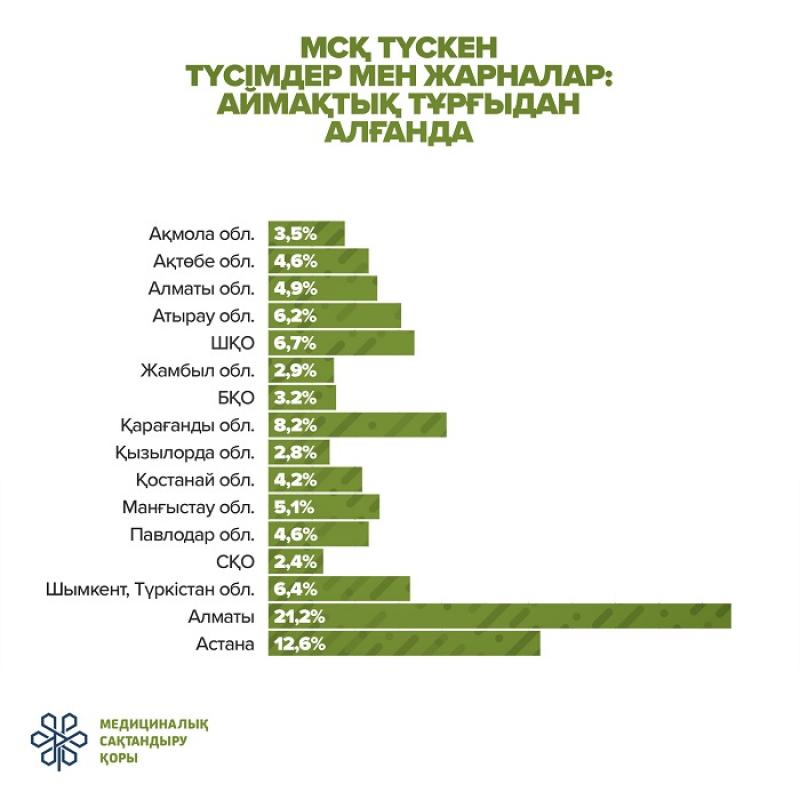 Aımaqtyq turǵydan alǵanda, jarna tóleý jaǵynan Almaty, Astana qalalary men Qaraǵandy oblysy kósh bastap tur.