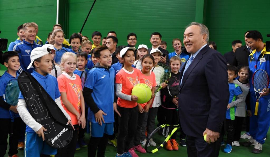 Nursultan Nazarbaev jas sportshylarmen áńgimelesip, tennıs dobyna estelik qoltańba qaldyrdy, sondaı-aq osy ortalyqtyń qonaq úı kesheni men basqa da oryndaryn aralap kórdi.