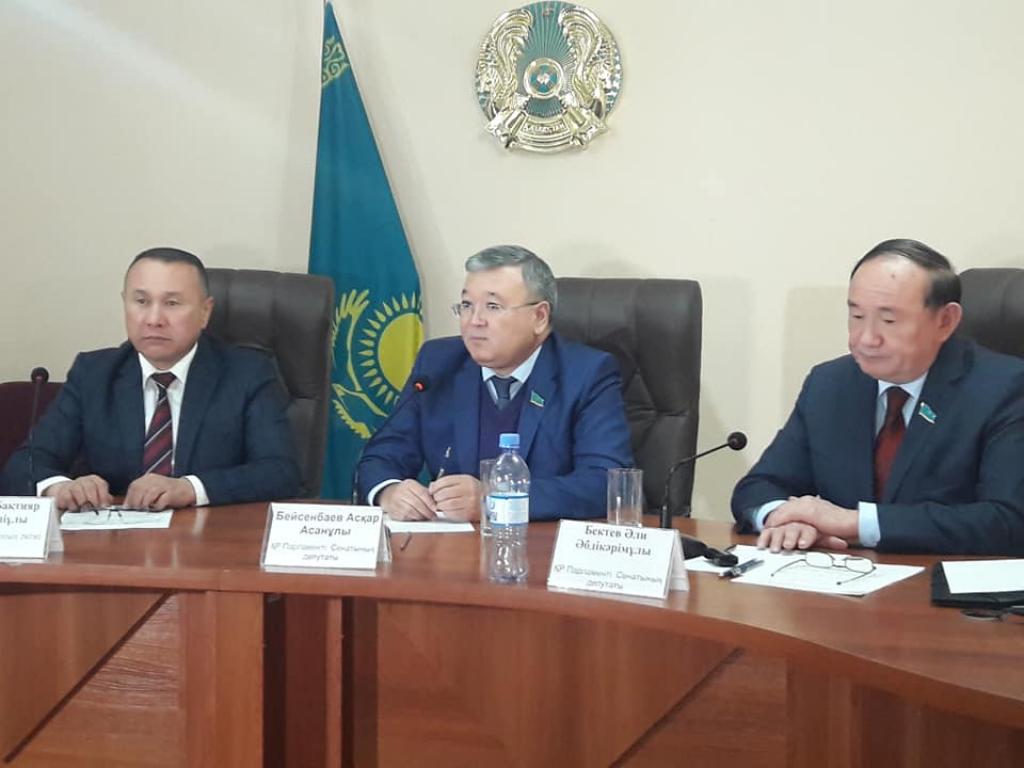 Túlkibas aýdanyna arnaıy issaparmen kelgen Parlament Senatynyń depýtattary Asqar Beısenbaev pen Álı Bektaev aýdan aktıvimen jáne turǵyndarmen kezdesýinde Elbasy N.Nazarbaevtyń «Qazaqstandyqtardyń ál-aýqatynyń ósýi: tabys pen turmys sapasyn arttyrý» atty Joldaýynyń basym baǵyttaryna jeke-jeke toqtalyp, mańyzdylyǵyn túsindirdi. Al Saıram aýdany turǵyndarymen bolǵan kezdesýde senator Á.Bektaev «Bıznestiń jol kartasy -2020» baǵdarlamasynyń ne sebepten taǵy da 5 jylǵa uzartylǵanyn túsindirip ótti. О́ziniń ómirsheńdigin dáleldegen baǵdarlamanyń arqasynda elimizde talaı kásipker nesıe alyp, kóptegen kásipkerlik sýbektileri iske qosyldy, myńdaǵan jumys oryndary ashyldy.