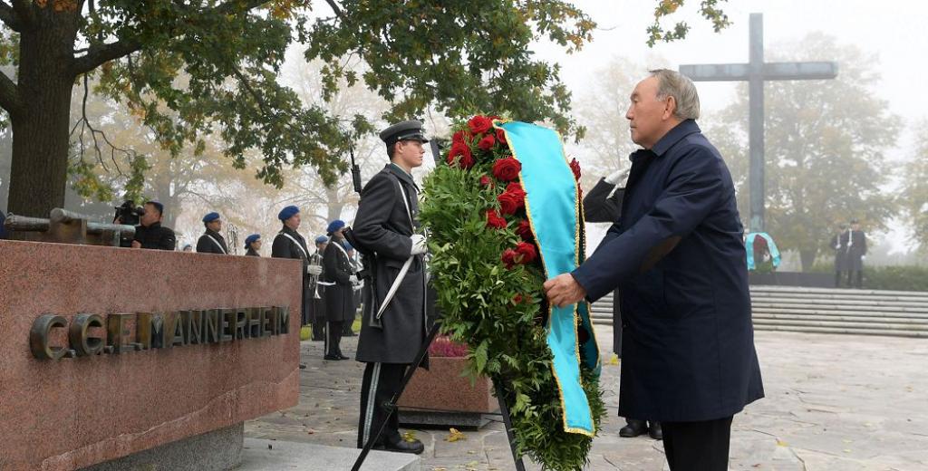Sondaı-aq Memleket basshysy «Hıetanıemı» memorıaldyq keshenindegi Batyrlar kresti men marshal Mannergeımniń eskertkishine gúl destelerin qoıý rásimine qatysty.