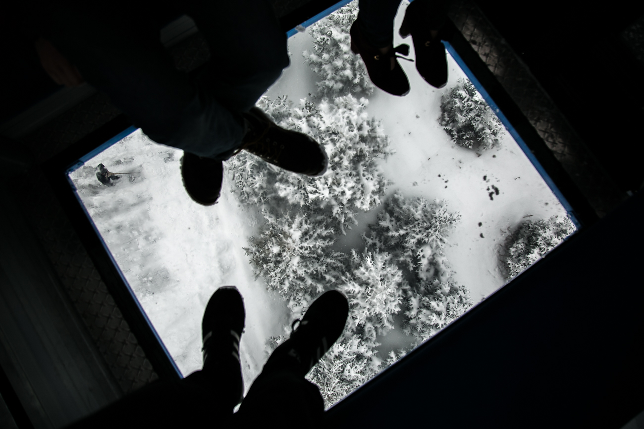 Qoldanystaǵy kabınalarǵa qaraǵanda, jan-jaqty ashyq sholý kabınasy jolaýshylarǵa qyzyqty kóńil-kúı syılap, erekshe áser alýǵa múmkindik beredi. Kabınadaǵy móldir qabatty eden kórkem shatqaldyń ústinen júzip bara jatqandaı áser qaldyrady. Fýnıkýlerge «Medeý-Shymbulaq» arqan joly arqyly otyrýǵa bolady.