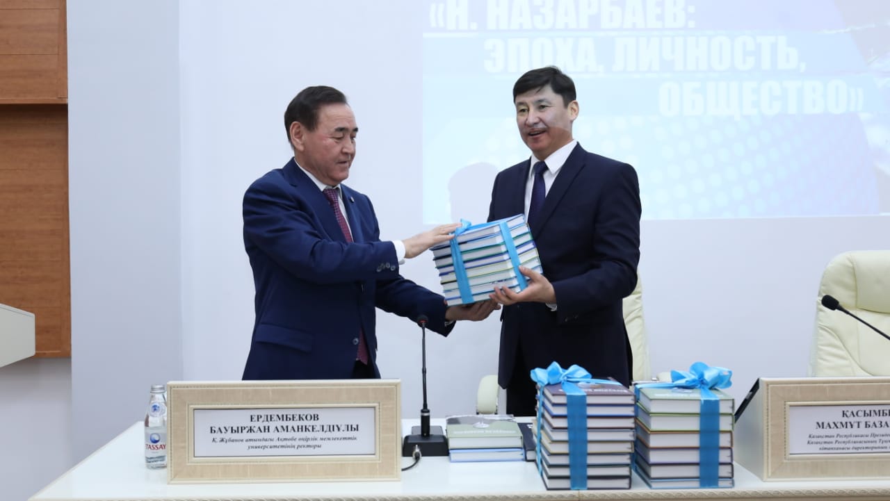 Kezdesý barysynda Q.Jubanov atyndaǵy AО́MÝ kitaphanasyna Elbasy kitaphanasynyń 350-den astam kitaby syıǵa tartyldy. Olardyń ishinde N.Á.Nazarbaevtyń eńbekteri, Tuńǵysh Prezıdenttiń 1990-2016 jyldar arasyndaǵy qyzmetiniń hronıkalary, memleket basshysynyń resmı ómirbaıany, qazaqstandyq jáne sheteldik avtorlardyń Elbasy týraly kitaptary, qoǵamdyq-saıası, ekonomıkalyq jáne mádenı taqyryptardaǵy ózekti ádebıetter bar.