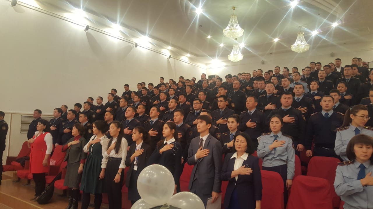Merekelik is-sharada Aqtaý qalasy PB bastyǵynyń orynbasary polısııa polkovnıgi M.Sadaqbaev QR Ishki ister mınıstri Q.Qasymovtyń quttyqtaý jedel hatyn oqyp, ári qaraı merekelik buıryqtarmen tanystyrdy.