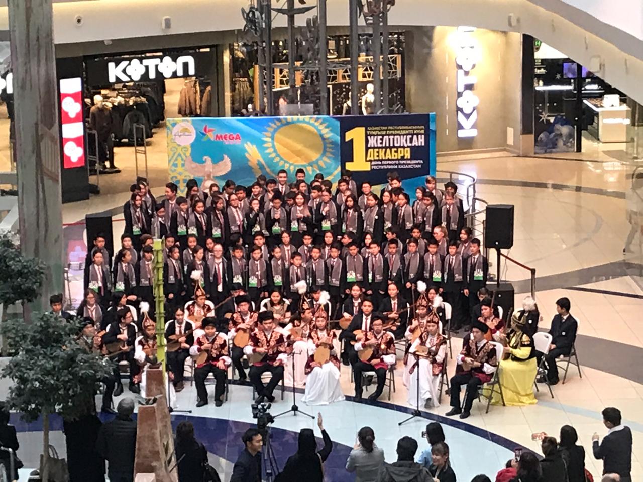 Fızıka-matematıka baǵytyndaǵy jas daryndar mektebiniń dombyra orkestriniń músheleri kúı atasy Qurmanǵazynyń «Balbyraýyn», Ábdimomyn Jeldibaevtyń «Erke sylqym» kúılerin kúmbirlete oryndap kópshiliktiń alǵysyna bólendi. Al mektepshilik hor úıirmesiniń talanttary «Qazaq eli» ánin naqyshyna keltire shyrqap merekeniń shyraıyn ashty. Pedagog-uıymdastyrýshy Janerke Satqynbekovanyń sózinshe, oqýshylar bul kúnge aıryqsha daıyndalǵan. Olardyń ústindegi qazaqy oıý-órnektermen kómkerilgen ulttyq kıimderiniń ózi shákirtter úshin bul merekeniń máni zor ekenin ańǵartatyndaı. Júzderi bal-bul jaınaǵan olar óz áserlerimen bólisti.