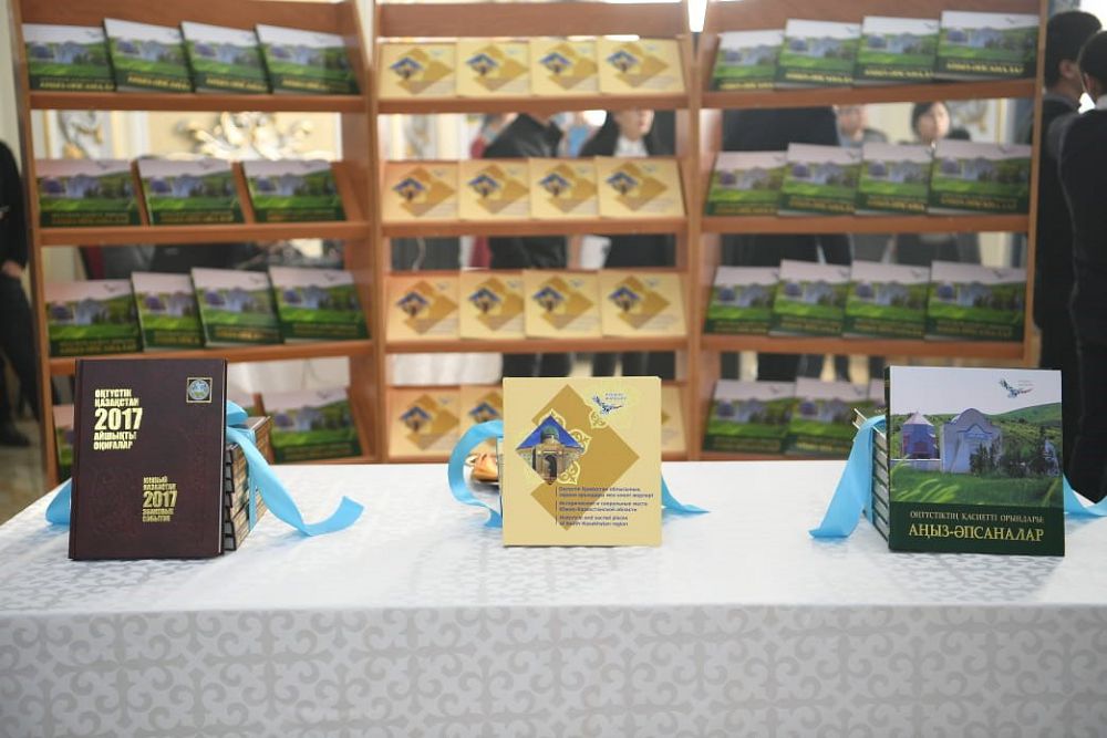 Úsh tilde shyǵarylǵan kitap-fotoalbomda Túrkistan oblysynyń tarıhı oryndary túgel qamtylǵan. Kıeli oryndar men eskertkishter týraly maǵlumattar qazaq, aǵylshyn jáne orys tilderinde berilip, sýrettermen kómkerilgen. Al «Ońtústiktiń qasıetti oryndary: ańyz-ápsanalar» atty kitapta aımaqtaǵy áýlıe-ámbıeler, el aýzyndaǵy tulǵalar týraly ańyzdar men áńgimeler jazylǵan. Kóne zamandardan syr shertetin ápsanalar men qyzyqty derekter mol.