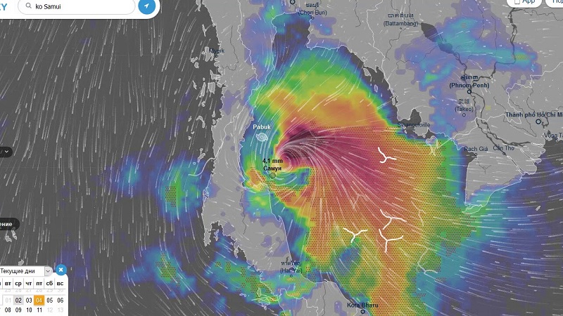 Sońǵy málimetterge súıensek, «Pabýk» daýyly Sıam buǵazynan batysqa qaraı baǵyt alǵan. Qazirgi tańda onyń jyldamdyǵy saǵatyna 65 kılometrge jetip otyr.