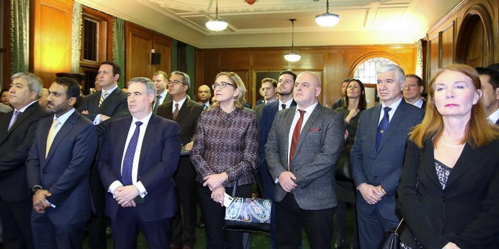 Ulybrıtanııanyń Eýropa men Amerıka isteri boıynsha memlekettik mınıstri Ser Alan Dankan, QR Elshisi Erlan Ydyrysov jáne 2019 jylǵy 1 qańtarda BUU Qaýipsizdik Keńesinde Azııa-Tynyq muhıt tobynyń ókili retinde Qazaqstannyń ornyna kelgen Indonezııanyń Elshisi Rızal Sýkma brıfıngte sóz sóıledi. Is-sharaǵa Ulybrıtanııa Syrtqy ister mınıstrliginiń basshylyǵy men qyzmetkerleri, brıtandyq Parlament músheleri, birqatar elshi, iskerlik toptardyń ókilderi, sarapshylar jáne jýrnalıster qatysty.