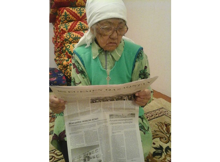 Úlken ómirge, jer-jıhan jańalyqtaryna elimizdiń bas gazeti arqyly jalǵanǵan Qamıda áje áli kúnge deıin bizdiń gazetimizdi qadaǵalap otyrady eken. Kózáınegin kıip alyp, gazette jarııalanǵan maqalalardy, tipti eksperıment retinde basylyp júrgen latyn árpindegi jazbalardy da oqyp turady.