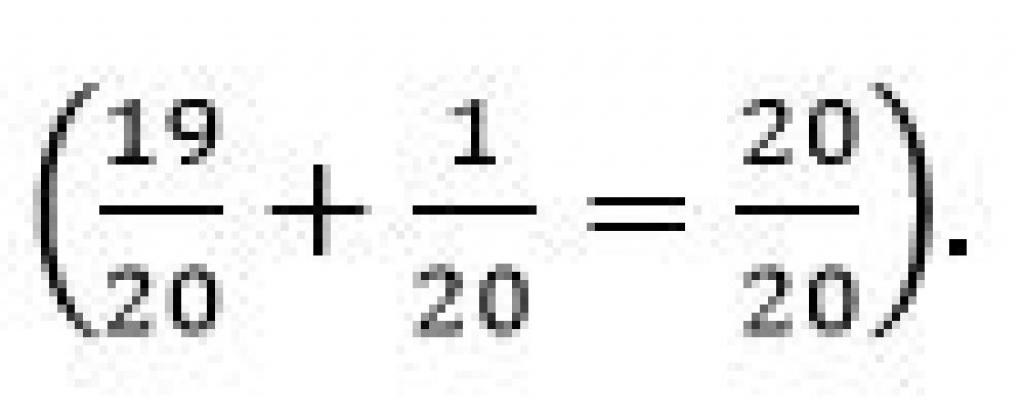 23-shi qara eseptiń durys jaýaby: Esepte kórsetilgen Áıteke bıdiń balalaryna arnalǵan tulparlardyń ekiden bir bóligi, odan keıin naǵashyǵa arnalǵan tórtten bir bóligi jáne qaıyn jurtqa arnalǵan besten bir bólikterdiń qosyndysy barlyq tulpar sanyn qamtı almaıdy. Sebebi ½ degenimiz ol jıyrma bóliktiń on bóligi, ıaǵnı 10/20 bólik bolady. Al ¼ – jıyrma bóliktiń bes bóligi, ıaǵnı 5/20 bólik bolady. Sol sııaqty 1/5 – jıyrma bóliktiń tórt bóligi, ıaǵnı 4/20 bolady. Eger osylardyń barlyǵyn qossaq, onda 19/20 bolady:
