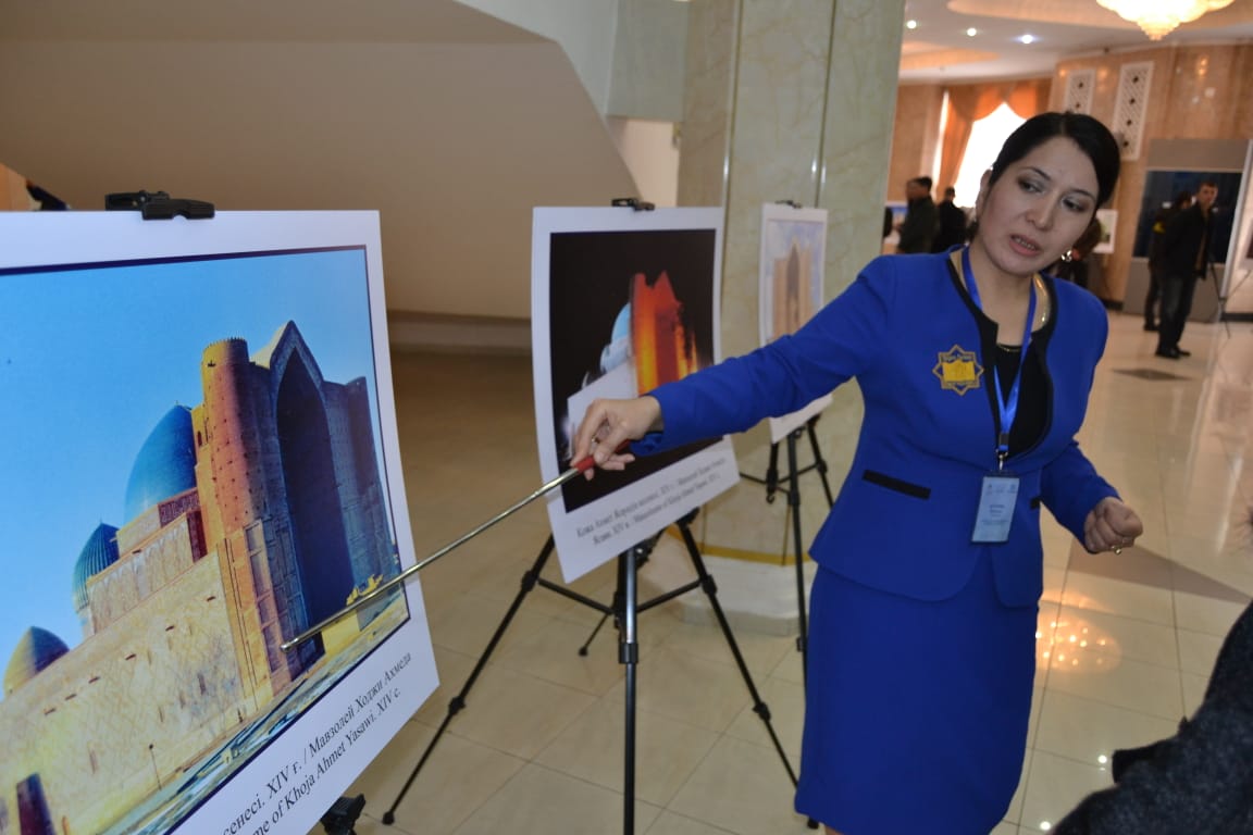 1871-1872 jyldary jıhankez A.Kýnnyń «Túrkistan albomynda» jaryq kórgen Túrkistan qalasy, Qoja Ahmet Iаsaýı kesenesi, ondaǵy Ámir Temirdiń buıryǵymen jasalǵan HIV ǵasyrdyń qundy jádigerleri - Taıqazan, Laýha (týdyń ushy), Shyraǵdandar, Esikter men qoryq-mýzeı qoryndaǵy etnografııalyq, arheologııalyq materıaldar, Túrkistan óńirindegi tarıhı-rýhanı oryndardyń fotosýretteri kópshilik nazaryna usynyldy.
