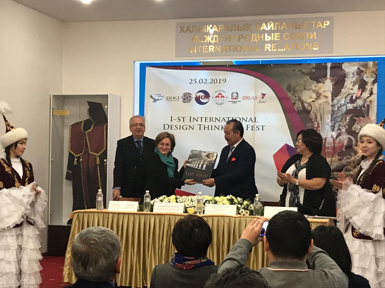 Italııanyń Qazaqstandaǵy Elshisi jas dızaınerlerge ózderin kórsetýge múmkindik beretin mádenı oqıǵalardy jarııalaý aǵymdaǵy sátte basymdyq bolyp tabylatynyn jetkizip, Qazaq Bas sáýlet-qurylys akademııasy rektoryna arnaıy syı-sııapat jasady.