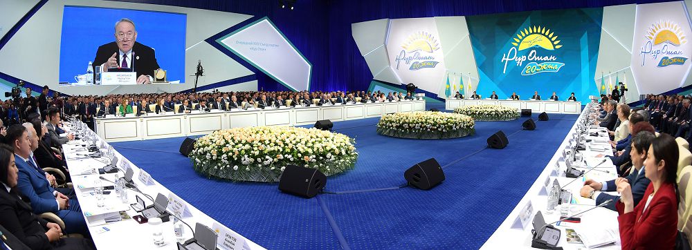 Elbasy sózin «Nur Otan» – tolaǵaı tabystyń jáne bolashaqqa jol ashatyn jarqyn jetistikterdiń partııasy. Bizdiń uzaq merzimdi strategııamyz, mol tabıǵı resýrsymyz, saıası erik-jigerimiz bar. Memlekettiń qýattylyǵy ekonomıkanyń damý qarqynymen jáne turǵyndardyń turmys sapasymen ólshenedi. Sondyqtan men ózime senim artqan halqymnyń bolashaqta emes, qazir baqytty bolǵanyn kórgim keledi. Bizdiń ustanymymyz – tatýlyq pen tynyshtyq, uranymyz – bereke men birlik. Táýelsiz Qazaqstannyń arqa súıeıtin tiregi – baıandy beıbitshilik pen keleli kelisim! Bas partııa bolý degenimiz – basqarý emes, elge adal qyzmet etý! Biz – halyq birliginiń partııasymyz. Búgingi sezd Qazaqstandy damytýdyń jańa kezeńine jol ashady. El táýelsizdiginiń