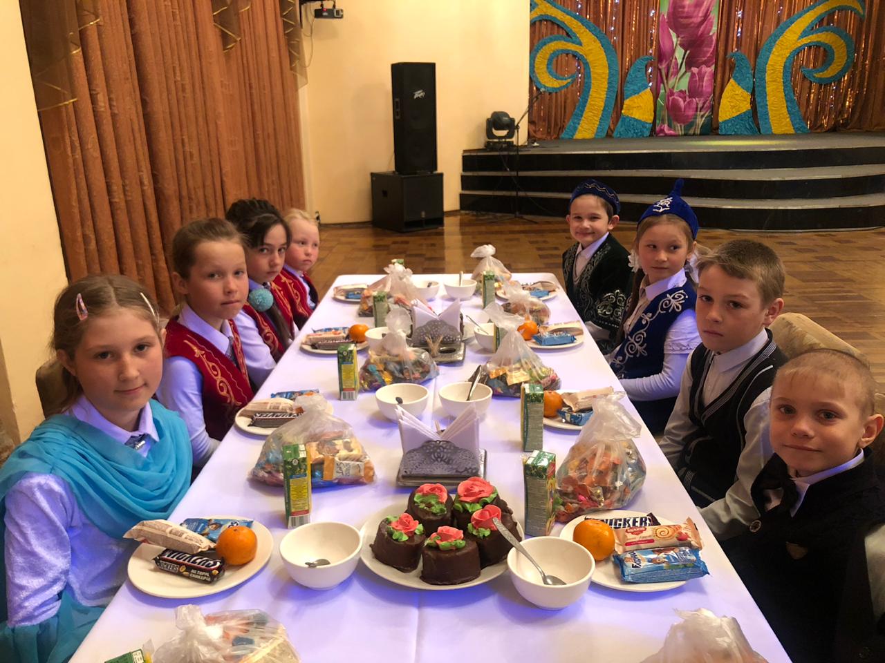 Shara sońynda ár balaǵa tátti-dámdiler salynǵan kúlek pen syılyq tartý etildi.