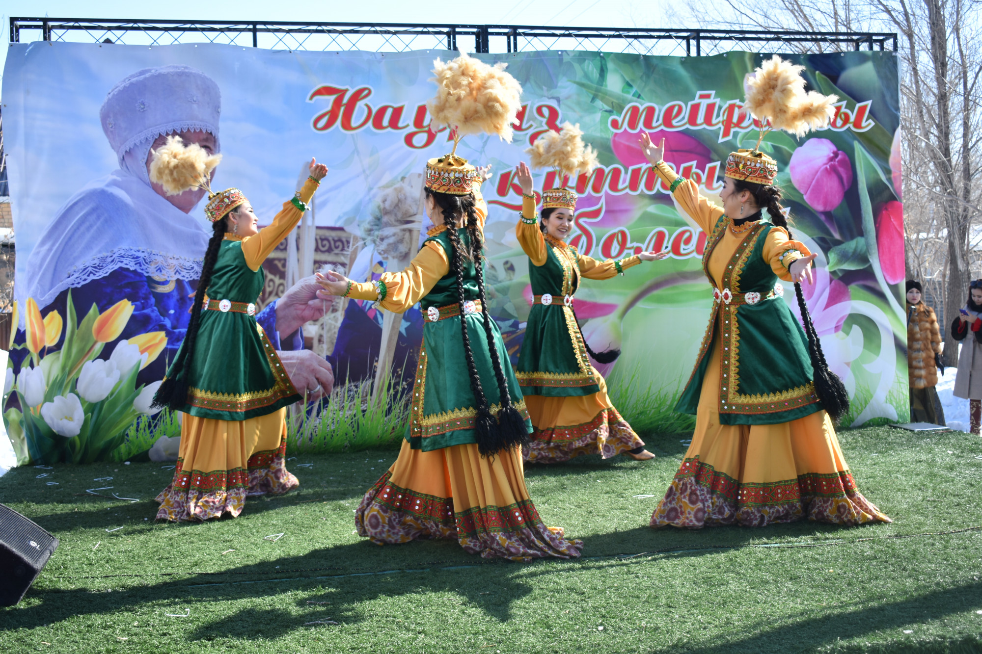 Jınalǵan qaýym merekelik konsert tamashalap, toǵyzqumalaq pen asyq atý oıyndarynda sheberlik baıqasty, ulttyq taǵamdardan dám tatyp, kıimder kórmesin tamashalady.