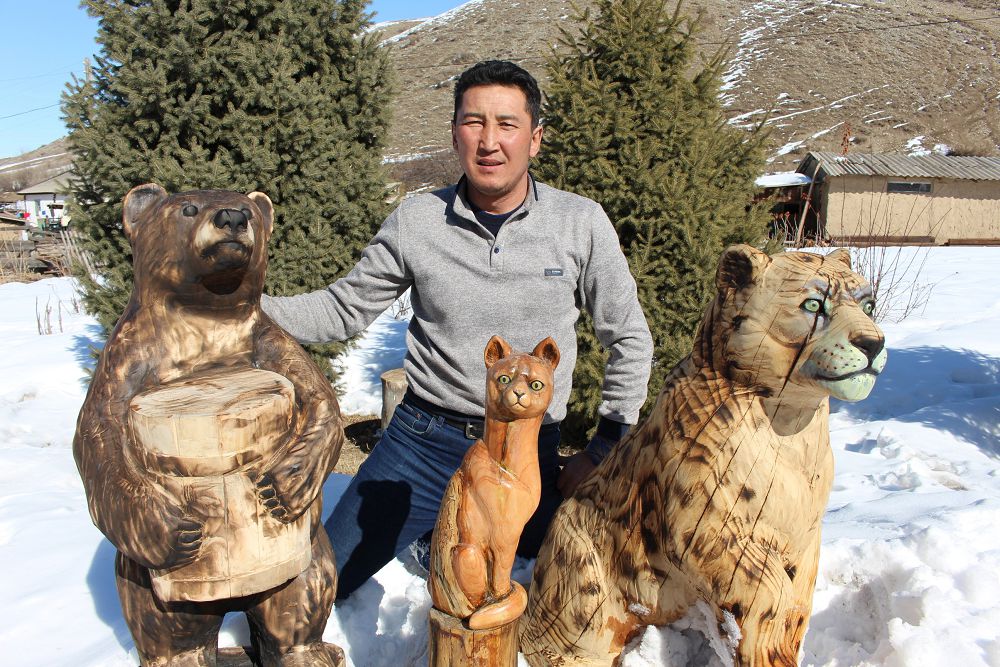 Aǵashtan jasap shyǵatyn ańdary týra ózinen aınymaı kóz tartyp turatyny qýanarlyq. Ony qalaǵan túspen syrlap qoısa, uzaq jyldarǵa shydas beredi eken. Erjanǵa arnaıy tapsyrys berip jatatyn jandar da kóp. Ásirese, eki qabatty úıleri bar, esikteriniń aldy alýan gúlmen, tal-terek, jemis aǵashtarymen kómkerilgen sándi aýlalarda túrli ańdardyń ásirese, eliktiń músinderi turǵany ǵajap-aq. Erjannan estigenimizdeı birsypyra músinderi qoǵam qaıratkerleriniń esikteriniń aldynda turǵan kórinedi. Ras, aǵashtan aılap, aptalap mańdaı terlete jasap shyǵatyn músinderdiń baǵasy da ózin-ózi aqtaıtyn dárejede bolady eken. О́ıtkeni bul erinbeı etken eńbektiń jemisinen quralady.