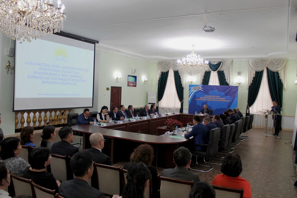 Májiliste koalısııa músheligindegi partııalardyń basshylary, «Mıras» aımaqtyń keńesiniń músheleri de sóz alyp, elordamyzǵa Elbasy esimin berý týraly óz oılaryn ortaǵa salyp, pikirlerimen bólisti. Atap aıtqanda, «Aýyl» Halyqtyq – demokratııalyq – patrıottyq partııasynyń oblystyq fılıaly tóraǵasy Serikbaı О́mirzaqov, «Aqjol» Qazaqstan demokratııalyq partııasy oblystyq fılıalynyń tóraǵasynyń orynbasary Shárbaný Esekeeva, «Qazaqstan kommýnıstik halyq partııasy» oblystyq fılıalynyń hatshysy Talǵat Teleýbaev, «Mıras» qoǵamdyq keńesiniń músheleri M.Mámetova atyndaǵy Qyzylorda gýmanıtarlyq kolledjiniń dırektory Baqytjan Saılybaev pen aımaqtyq «Rýhanı jańǵyrý» ortalyǵynyń dırektory Nurlybek Myńjas, ÚEU–dar atynan oblystyq ardagerler keńesiniń tóraǵasy Serik Dúısenbaev pen oblystyq kásipodaqtar tóraǵasy Serik Sermaǵanbetovter Qazaqstannyń tabystary men jeńisteri Nazarbaevtyń esimimen tyǵyz baılanysty ekendigin tilge tıek etip, ótpeli kezeńde eldi órge súıregen Nursultan Nazarbaevtyń esimin elordamyzǵa berý oryndy sheshim jáne el damýynyń jańa kezeńin anyqtaıtyn asa mańyzdy qadam ekenin aıtty.