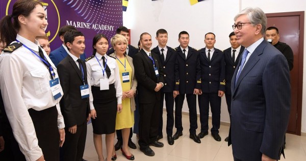 Baıandamadan soń Prezıdent Teńiz akademııasynyń jumysymen tanysty. Memleket basshysynyń nazaryna norvegııalyq Kongsberg kompanııasynyń keme júrgizýshilerdi jáne keme mehanıkterin oqytýǵa arnalǵan joǵary tehnologııalyq trenajerlary kórsetildi. Trenajerlardy jumys kezinde stýdentterdiń ózderi tanystyrǵan bolatyn. Qazirgi tańda Yessenov University stýdentteri Kaspıı teńiz jáne ózen kóligi ınstıtýtynda tájirıbeden ótýde. Atalǵan ınstıtýt – teńiz, ózen jáne aralas «ózen-teńiz» sýlarynda júzetin barlyq úlgidegi kemelerde jumys isteýge quqyǵy bar sý kóligi úshin mamandar daıyndaıtyn Kaspıı mańyndaǵy jalǵyz salalyq bilim berý kesheni. Stýdentterdiń iri salalyq kásiporyndarda, sondaı-aq ózen jáne teńiz flotynyń kemelerinde praktıkalyq daǵdylardy alýǵa múmkindigi bar.