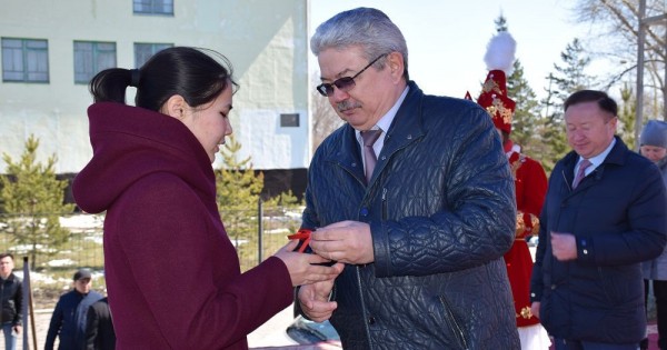 Oblys ákiminiń orynbasary Asqar Saqypkereev paıdalanýǵa berilgen 80 páterli úıdiń kiltterin qonystanýshylarǵa saltanatty túrde tabys etti.