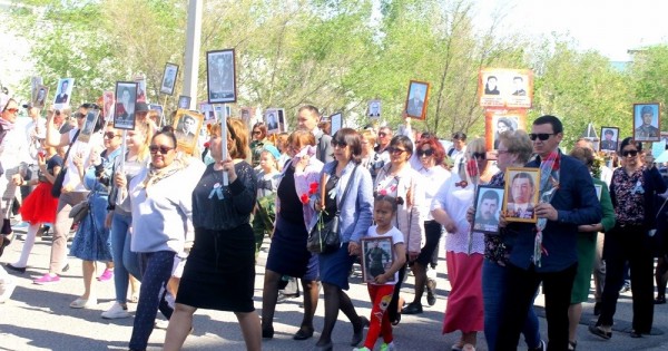Búgin 8 mamyr kúni - Atyraýdyń 200-ge jýyq turǵyny áskerı orkestrmen birge ekinshi dúnıejúzilik soǵys ardagerleriniń sýretterimen Jeńis saıabaǵyndaǵy máńgilik alaýǵa gúl shoqtaryn qoıdy.