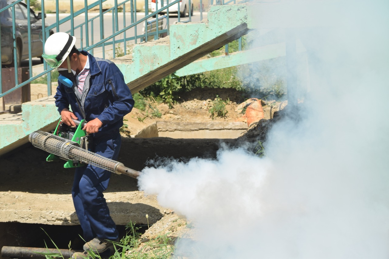 - Qan sorǵysh jándiktermen kúresý jumystaryna jel men tútin generatorlary, sý tasymaldaýshy kólikter men traktorlar, sondaı-aq qarasha aıyna deıin 4 aýysymda jumys isteıtin 20 dezınfektorlar tartylǵan. Dezınfeksııa qalanyń barlyq shaǵyn aýdandarynda tańerteń, kúndiz, keshki jáne túngi ýaqyttar da júrgiziledi, - dedi AG Desinfection Services JShS-niń entomology Aınagúl Dáýletııarov.