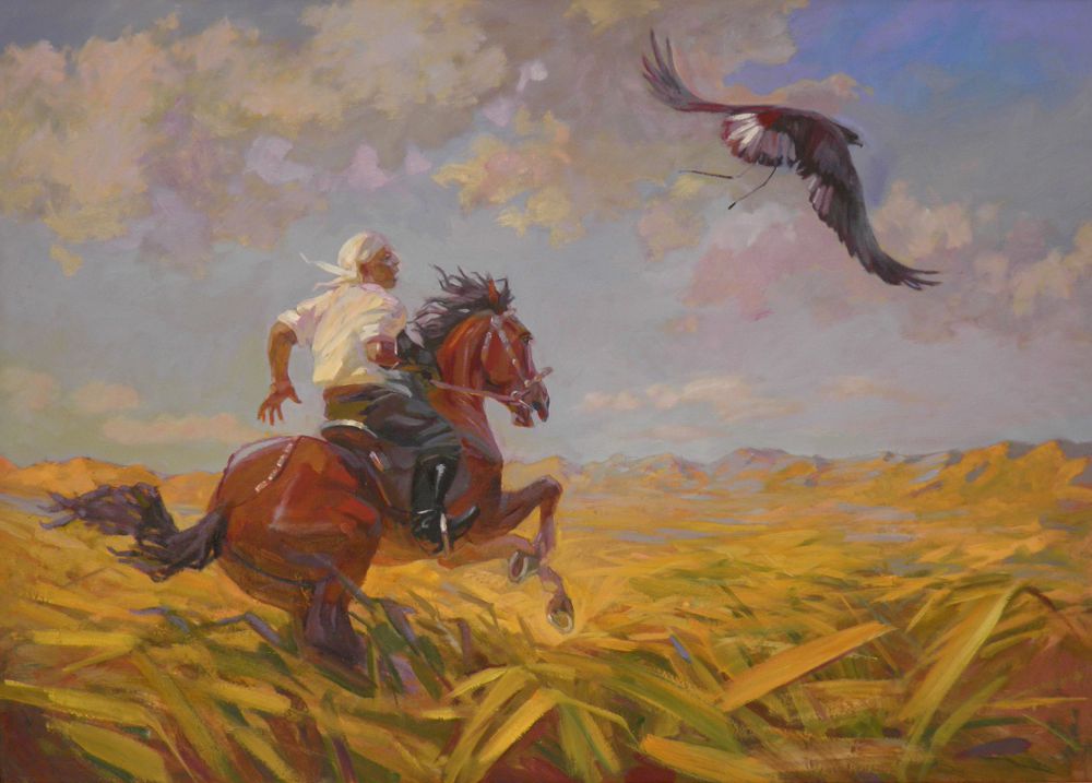 – Almas óziniń keskindemelik týyndylarynda detalızasııadan sanaly túrde alshaqtap, kompozısııanyń monýmentaldyǵyna umtylady. Ol ózi men keneptegi beıneniń ara qashyqtyǵyn saqtaı otyryp jalpylyqqa qol jetkizedi. Iаǵnı, sýretshi syrtqy turmystyq sýretteýden góri fılosofııalyq oılaýǵa talpynady. Oǵan avtordyń «Áke qanaty», «Dıalog», «Aýyz bekitý», «Syrlasý», «Kelisim aldynda» kompozısııalary jaqsy mysal bola alady. Munda qylqalam sheberi basty beıneni aýqymdy etip kórsetse, jazyqtyq betindegi zattar men fıgýralar úshin kenep kólemi árqashan tarlyq etetindeı áser qaldyrady.