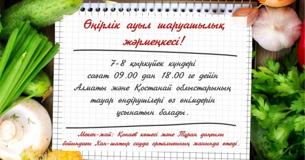 Uıymdastyrýshylardyń aıtýynsha, taýarlar baǵalary elordadaǵy bólshek saýda baǵalarynan 15-20 paıyzǵa tómen bolady. Jármeńke eki kún boıy saǵat 08.00-den 18.00-ge deıin jalǵasady. Kelýshiler úshin Almaty oblysynyń ónerpazdary konserttik baǵdarlama usynady.
