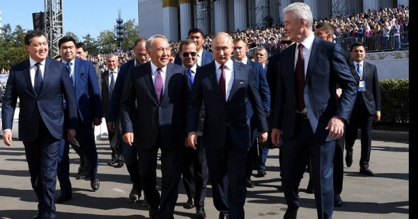 Nursultan Nazarbaev Reseı Prezıdenti Vladımır Pýtınmen birge Máskeý qalasynyń 872 jyldyǵyn merekeleýdiń ashylýyna qatysty.