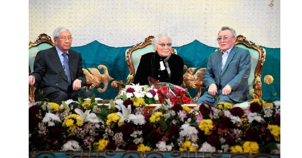 Saltanatty jıynnyń sahnasyna kóterilgen Senat depýtaty Qýanysh Sultanov óziniń júrekjardy tilegimen birge, Parlamenttiń qos palatasynyń tóraǵalary – Qazaqstan Respýblıkasy Parlament Senatynyń tóraǵasy Darıǵa Nazarbaeva men Májilis tóraǵasy Nurlan Nyǵmatýllınniń, al Mádenıet jáne sport mınıstri Aqtoty Raıymqulova Premer-Mınıstr Asqar Mamınniń joldaǵan quttyqtaýyn jetkizdi. Memlekettik laýazymdy tulǵalardyń bári de Ábdijámil Kárimulynyń qalam qaıratyn joǵary baǵalaı otyryp, qazaq ádebıetin álemge tanytqan eńbeginiń áli san urpaq ókiline ónege bolatynyn jetkizgen.