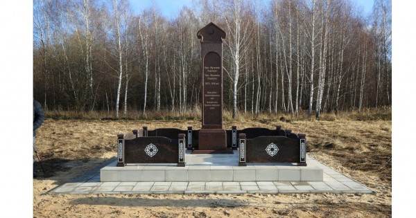 Qasymov qalasynyń ońtústigindegi Ýlanova Gora aýylynyń janynda Iаblonevyı sad dep atalatyn alańqaıdaǵy eski Tatar zıratyna qoıylǵan memorıaldy taqtany jasaý úshin tabıǵı qońyr tústi granıt paıdalanylǵan. Eskertkishtiń bıiktigi úsh metr. Tóbesine doǵal kúmbez ornatylǵan.