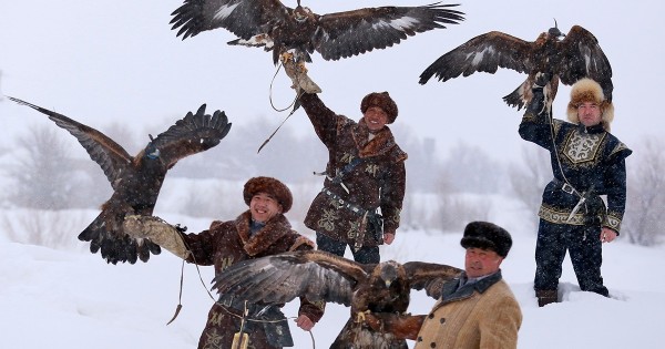 Shara qonaqtary ulttyq ábzelmen kómkerilgen at mingen atbegiler men aýdannyń túkpir-túkpirinen jınalǵan búrkitshilerdiń ónerin tamashalady.