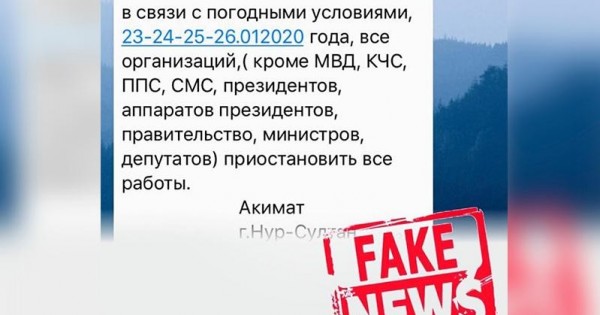 - Aýa raıynyń qolaısyzdyǵyna baılanysty qaladaǵy barlyq mekemelerdiń jumysyn toqtatýǵa qatysty aqparat shyndyqqa janaspaıdy. Tek resmı aqparatqa senýlerińizdi suraımyz. Barlyq aqparat Nur-Sultan qalasy ákimdiginiń resmı saıtynda jáne akkaýnttarynda bar, - dep jazdy qala ákimi Altaı Kólginov Instagram paraqshasynda jazdy.