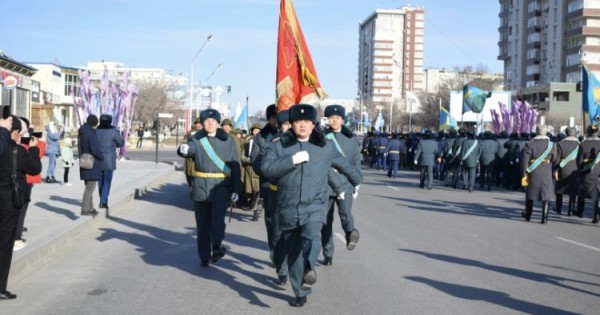 Sherýdi 8-shi gvardııalyq dıvızııa jeke quramy bastap, Qazaqstan Respýblıkasy Ulttyq ulan, Teńiz jaıaý áskeri, Polısııa departamenti, Tótenshe jaǵdaılar departamenti, Qylmystyq-atqarý júıesi departamentimen qosa barlyq áskerı bólimderdiń jeke quramy sap túzep júrip ótti.