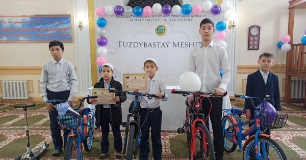 Quran jarysynda dara shyqqan Nurbolat Áýezhan, Salıh Nadırov, Ismaıl Áshimov, Abdýlazız Ábdimanap, Meıirlan Ábdimanap, Meıirman Orazaly esimdi qatysýshylarǵa meshit qarajaty esebinen velosıped, somakat syndy baǵaly syılyqtar men dıplomdar tabystaldy. Nebári tórtinshi synypta oqıtyn Nurjaqyp Nurdáýletke de yntalandyrý syılyǵy tabys etildi. Baıqaýǵa kórermen retinde kýá bolǵan ata-analar meshit ujymyna óz alǵystaryn bildirdi.