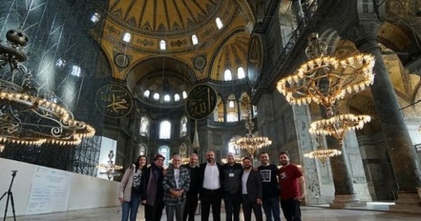 Akýstıkalyq jazba úshin Úlken Aıasofııa meshitiniń ımamy О́nder Soı jáne Úlken Aııa-Sofııa meshitiniń azanshysy Ahmet Toraman Aııa-Sofııa kúmbeziniń dál astynda qos daýysty ári minberde (saba) azan shaqyryldy. Sondaı-aq, mıhrabta «Ál-Fath» jáne «Nas» súreleri eshqandaı dybystyń súıemeldeýinsiz qarapaıym daýyspen oqyldy. Atap aıtar bolsaq, Aııa-Sofııa meshiti túrikterge deıin Vızantııa ımperııasynda sobor, keıin 500 jyl boıy (1935 jylǵa deıin) túrikterdiń dinı ortalyǵy qyzmetin atqarǵan. Ol 1453 jyly meshitke aınaldyrylǵan keıin, ǵımarattyń ishki kórinisi qaıta kórkemdeledi. HVI-XVIII ǵasyrlarda meshit munaralary men qosymsha qurylystary salynady. 1935 jyly Atatúrik Aııa- Sofııany mýzeıge aınaldyrǵan. Áli kúnge deıin mýzeı qyzmetin atqaryp keledi.