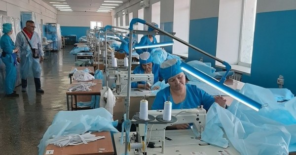 Sodan keıin oblys ortalyǵyndaǵy aýrýhanalar, emhanalarǵa, dárihanalarǵa túsedi. Betperdeler jasaıtyn shıkizat ónimderi Reseıden jetkiziledi. Matalardyń tyǵyzdyǵy 15, 26, 20 bolyp bólinedi de, 3 qabatty da betperdeler daıyndalýda.