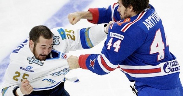 Aıtýly reıtıngte Damır Rysbaev pen Evgenıı Artıýhın arasyndaǵy aıqas úshinshi orynda tur. Bul – 2015 jyldyń qarashasynda Sankt-Peterbýrg qalasynda jergilikti SKA men Nur-Sultannyń «Barys» klýbtary arasyndaǵy báseke barysynda oryn alǵan oqıǵa. Sol kezde boıy 197 santımetr, salmaǵy 120 kılolyq 32 jastaǵy eńgezerdeı reseılik hokkeıshimen qazaqtyń qaısar uly jekpe-jekke shyqty. 19 jastaǵy Damırdyń boıy – 182 santımetr, salmaǵy – 90 kılo. Qarsylasy álde qaıda eńseli bolǵanyna qaramastan Rysbaev odan esh qaımyqpady. Qos dúleı bir-birin ala almaıtynyna anyq kóz jetkizgennen soń tóreshiler tóbelesti toqtatty. Rysbaev pen Artıýhın arasyndaǵy jekpe-jekti 3 mıllıon 200 myń adam tamashalaǵan eken.