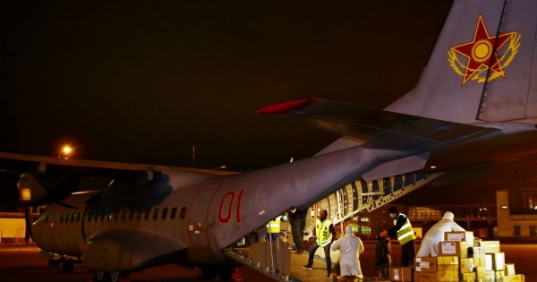 Medısınalyq júk maska (131500 dana), qolǵap (10900 dana), termometr (100 dana) jáne arnaıy qorǵanys kıimderden (720 dana) turady. Bul gýmanıtarlyq kómek Qazaqstan men Qytaı halyqtarynyń berik dostyǵynyń anyq aıǵaǵy.