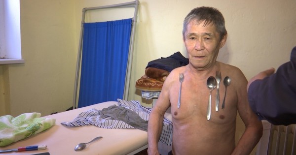 Ol denesine qasyqty, shanyshqy men pyshaqty, tıyndardy, tipti uıaly telefondy da japsyryp alyp, erkin qozǵala beredi. Jasy 70-ten asqan qarııanyń «magnıt adam» ekenin dostary ǵana biledi.