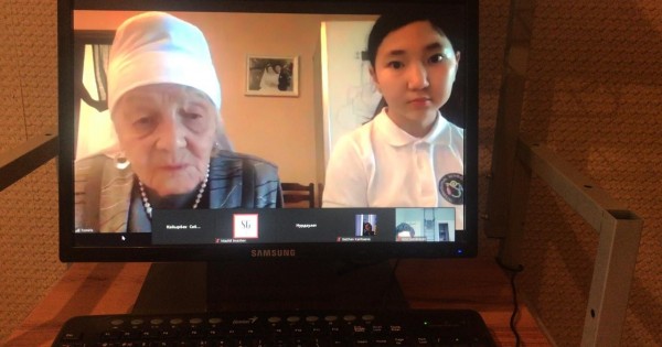 Onlaın kezdesýdiń sońynda balalar tyl ardageri Bıbinur Ahmetqyzymen halyq áni «Qusnı-Qorlandy» oryndady. Kúmis kómeı daýys ápkeli-sińlili Bıbinur men Bıbigúl analarymyzdyń boıyna daryǵan, qanyna sińgen asyl qasıet degen oıǵa qaldyq.