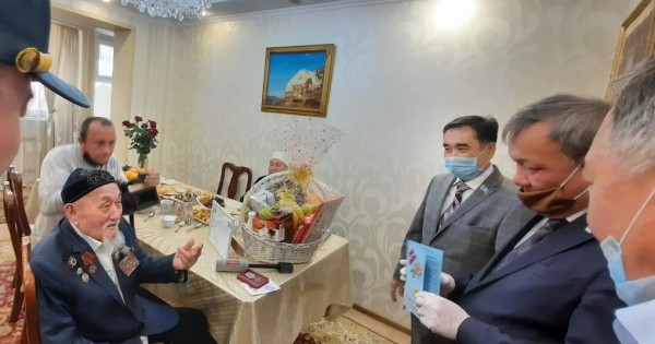 Sonymen qatar «Nur Otan» partııasy Mańǵystaý oblystyq fılıalynyń tóraǵasy, aımaq basshysy Serikbaı Trumovtyń atynan qart maıdangerdi Jeńistiń 75 jyldyǵymen quttyqtady. Odan keıin ardagerge azyq-túlik sebeti berildi. Beıbit ómir syılaǵan ardagerlerdiń erlikterin partııa eshqashan nazardan tys qaldyrmaıdy. «Ardagerlerdi ardaqtaıyq» partııalyq jobasy aıasynda árqashanda maıdangerlerge kómek kórsetip, qamqor bolatynyn jetkizgen Elýbaı Ábilov, surapyl soǵystaǵy maıdangerdiń kórsetken jaýjúrek erlikterine búgingi urpaq bas ıetinin aıta otyryp, nurotandyqtar atynan alǵysyn bildirdi.