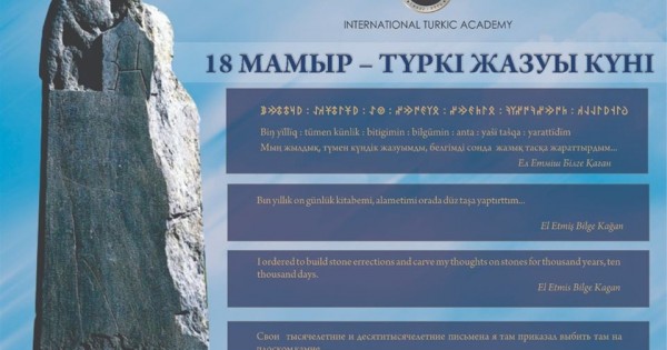 «Osyǵan oraı, Halyqaralyq Túrki akademııasy búgingi túrki jazýy kúnimen shyn júrekten quttyqtaıdy. Qazirgi tańda Halyqaralyq Túrki akademııasynda túrki jazýyn zerttep, aýdarýmen aınalysatyn «Túrkologııa, altaıstıka jáne mońǵoltaný» bólimi jumys isteıdi. Akademııa únemi túrkilerdiń jazý eskerkishterine qatysty tyń zertteýlerge qoldaý bildirip keledi. Atap aıtqanda, bıyl 24 sáýirde Akademııanyń bastamasymen IýNESKO deńgeıinde «Tonykók jyly» resmı jarııalanyp, Tonykók eskertkishiniń 1300 jyldyǵyna oraı álemniń 12 tilindegi aýdarmalary engizilgen «Bilge Tonyquq» jınaǵy jaryq kórdi», - dep habarlady Túrki akademııasynyń baspasóz qyzmeti.